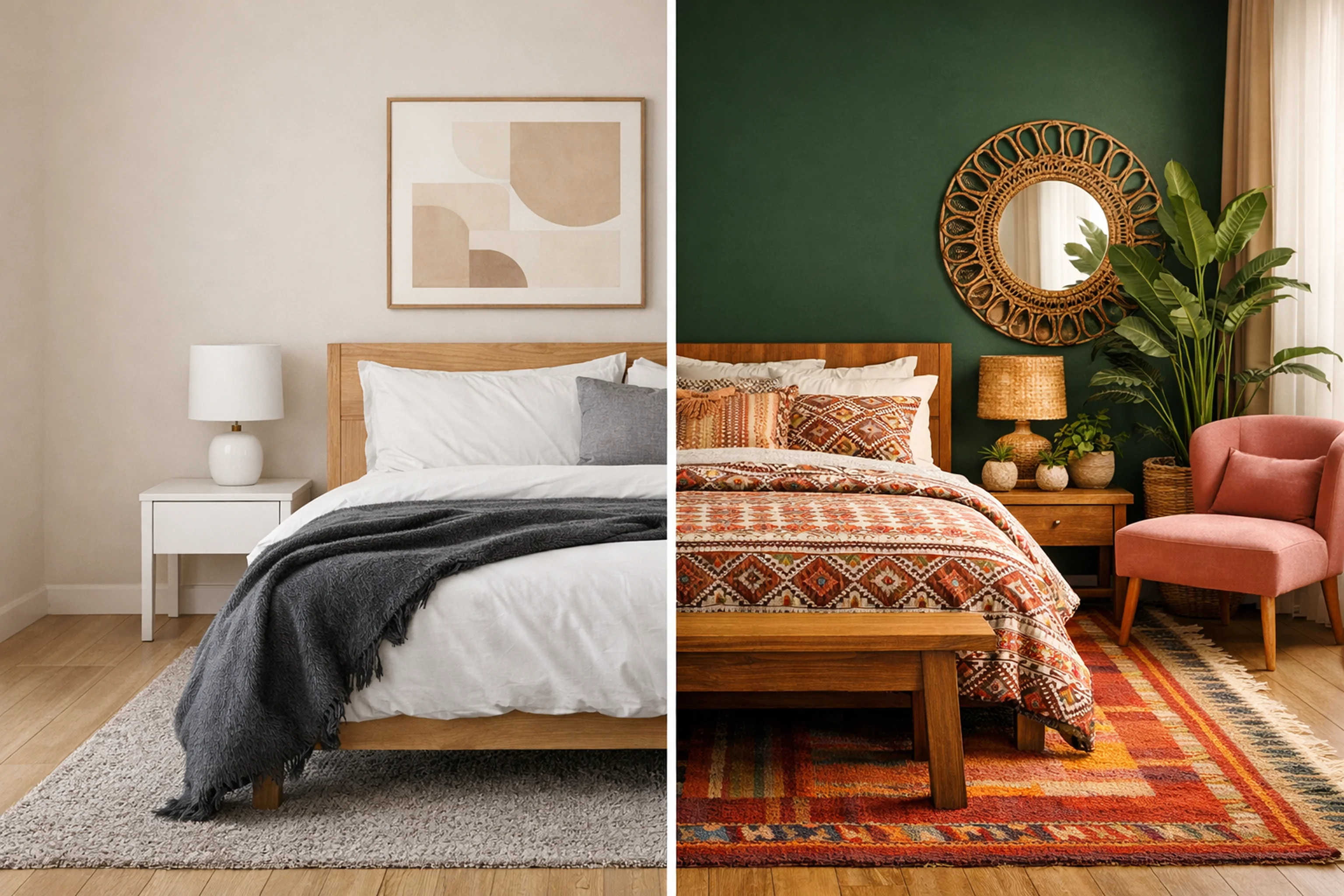 - Boho modern (natural fibers + earthy accents)